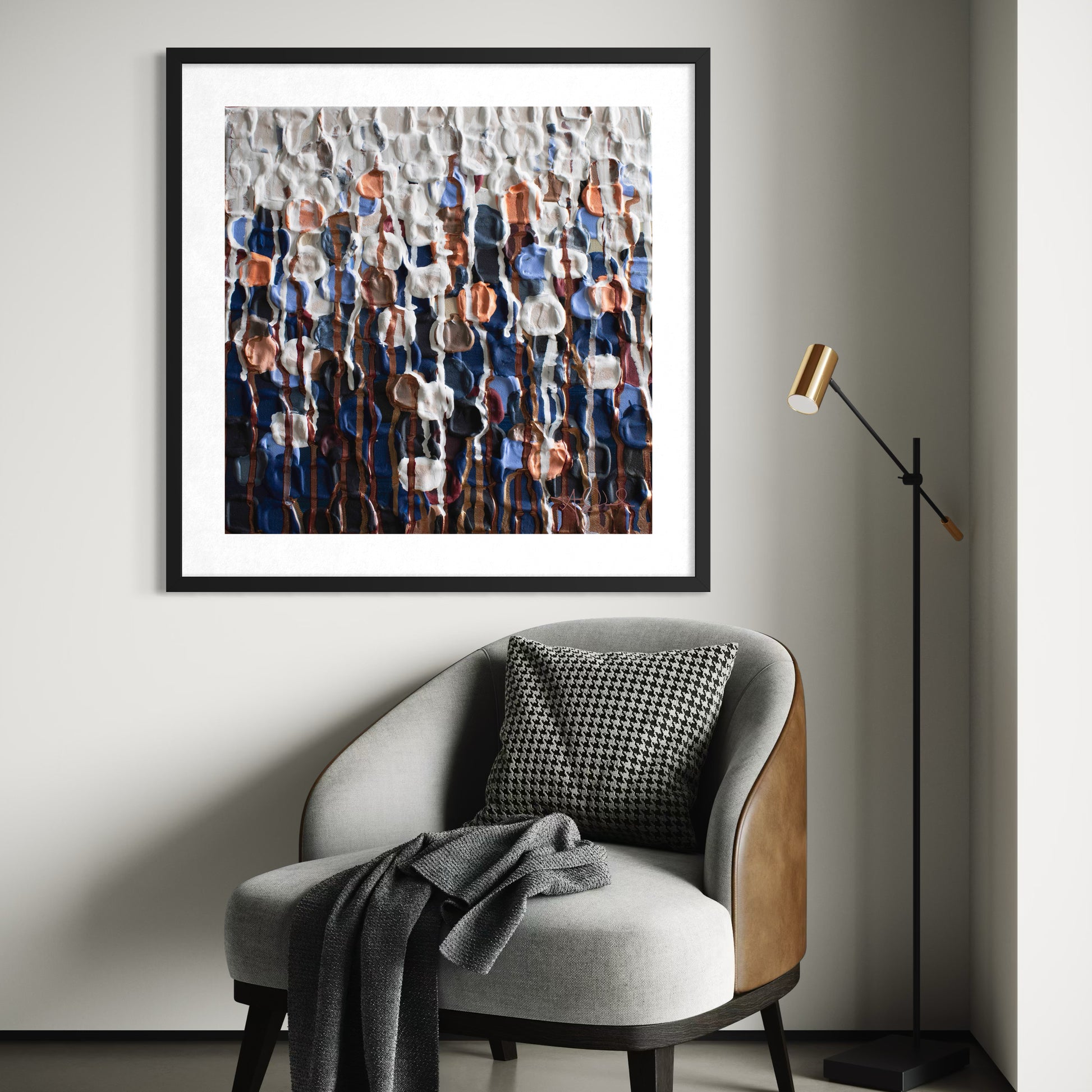A 20 inch x 20 inch print will arrive with a 1.5 inch mat border in a 24x24 or 24.75x24.75 inch frame, depending on frame color. If ordering the Concerto Black with Gold trim frame, the total size is 28.25 inches x 28.25 inches.