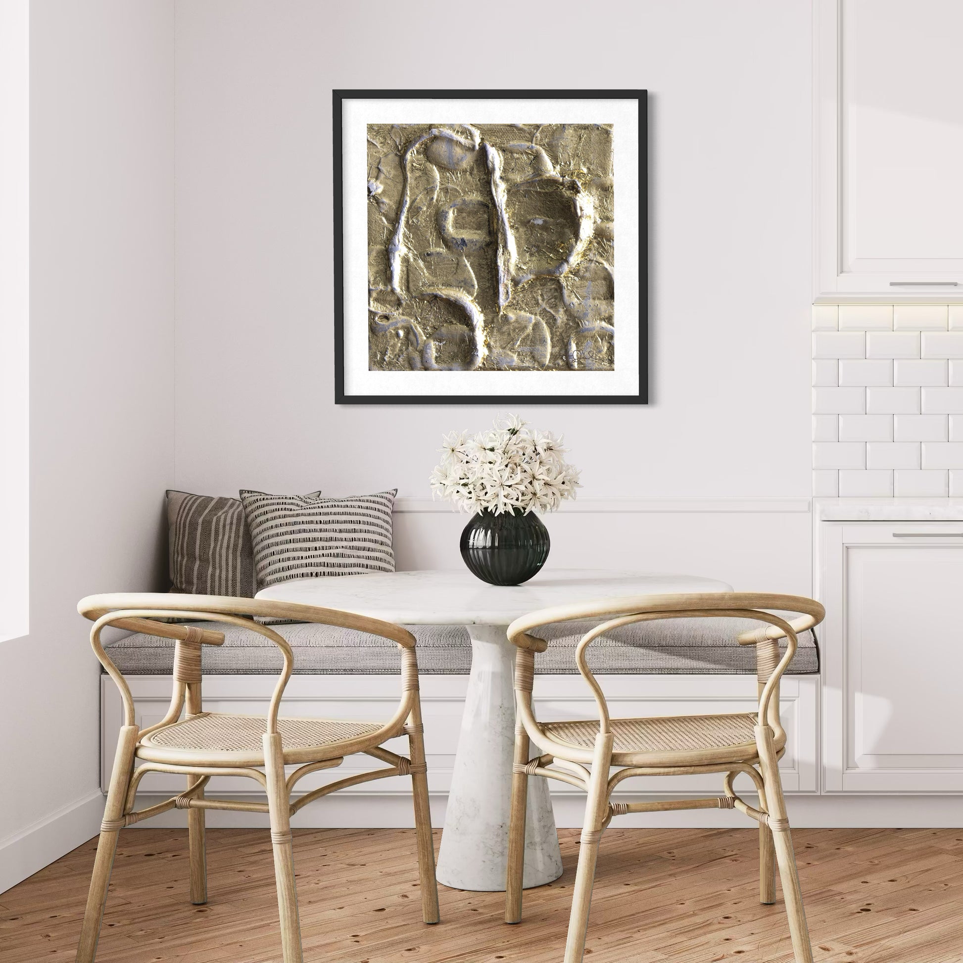 Please note, canvas prints do not have white border. Framed fine art prints do have white mat border. Unframed fine art prints will come with thin white border. See below for additional dimensions and details. **No gold leaf is used in prints.
